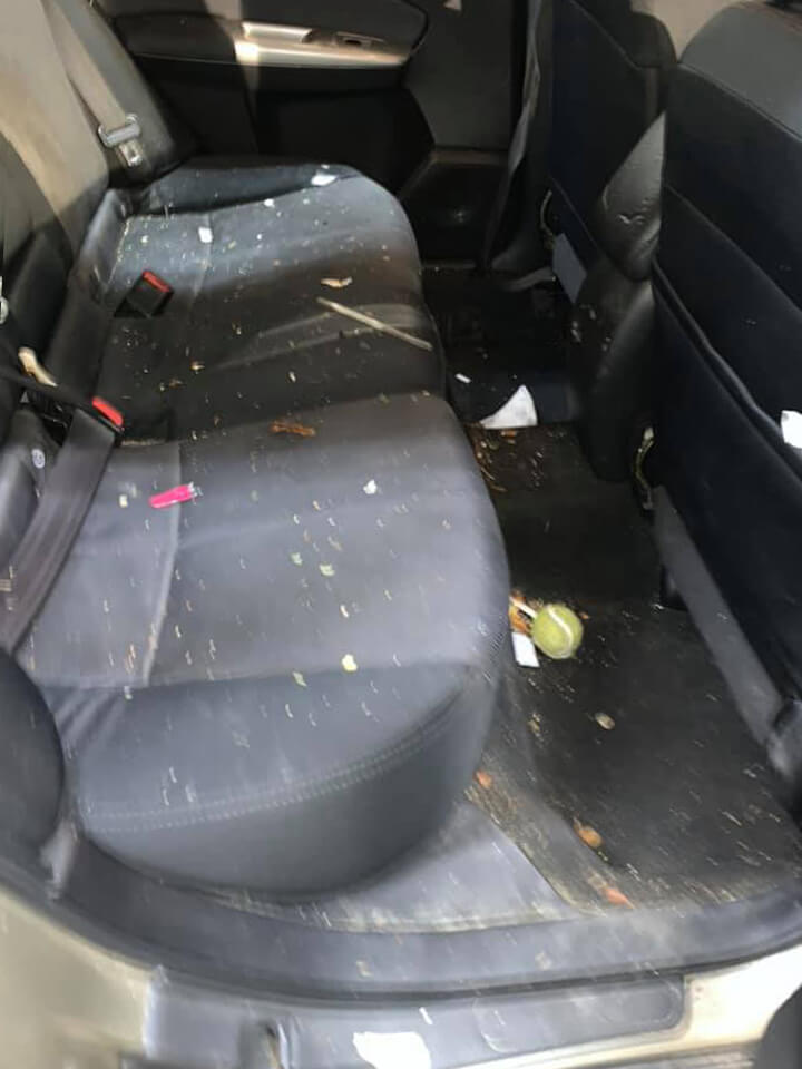 Full vacuum of auto interior; hand clean of vinyl; interior and exterior cleaning of windows and mirrors; shampoo carpets and upholstery; wash/dry of carpet or rubber floor mats; and clean door jams. NOTE: Pet hair removal service is not included. However, we will gladly remove your pet hair for an additional service fee. $5 charge for boxes used to store personal items, additional fee for excessive dog hair/tar; hazard fee for any hazardous material including needles be charged.